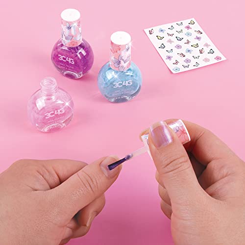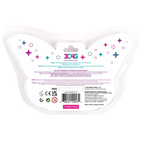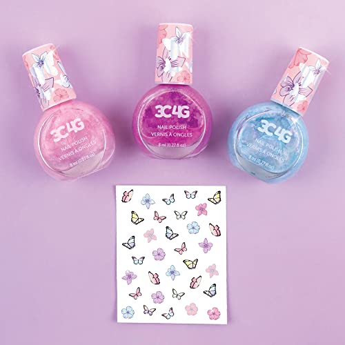 3C4G THREE CHEERS FOR GIRLS - طلاء أظافر لامع، 3 قطع وملصقات أظافر على شكل فراشة 3 طلاءات لامعة