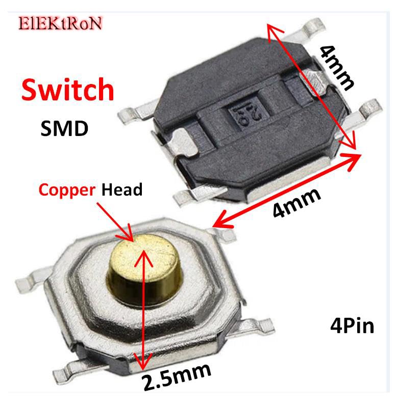Generic - عدد 10 قطع من زر باور - Micro High performance Durable Tactile Push Button Momentary Switch Tact 4pin Copper Head Head Keys (4mm x 4mm x 2.5mm) SMD