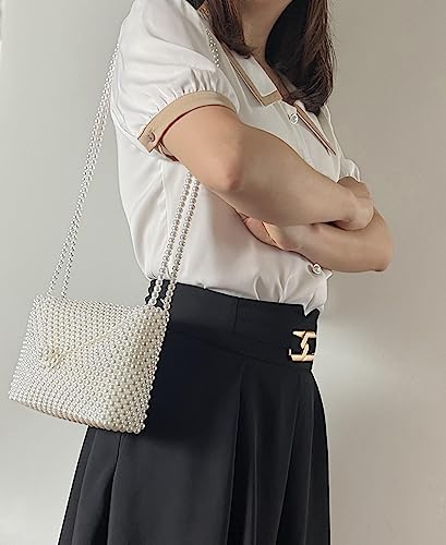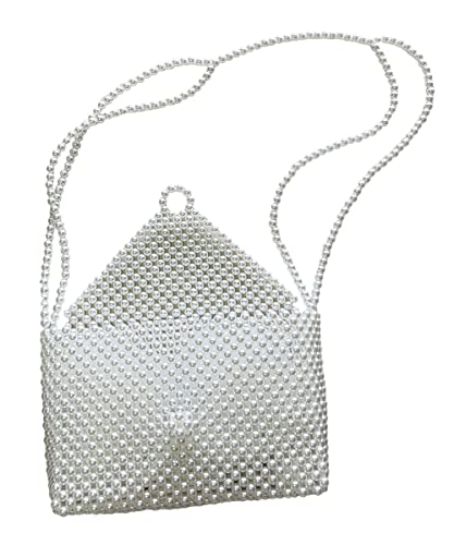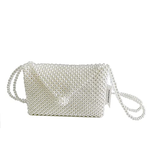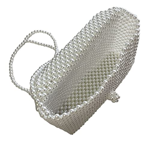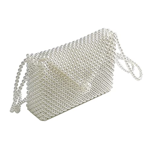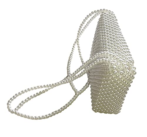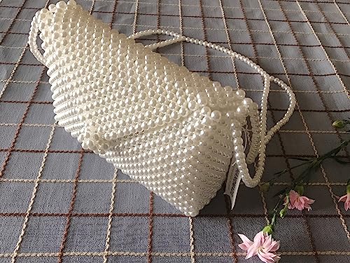 BuWiz - شنطة كتف نسائية مزينة باللؤلؤ من بوويز يد صغيرة بخرز كريستال نبيل لحفلات الزفاف مع سلسلة اللؤلؤ ابيض لؤلؤي