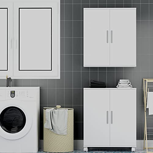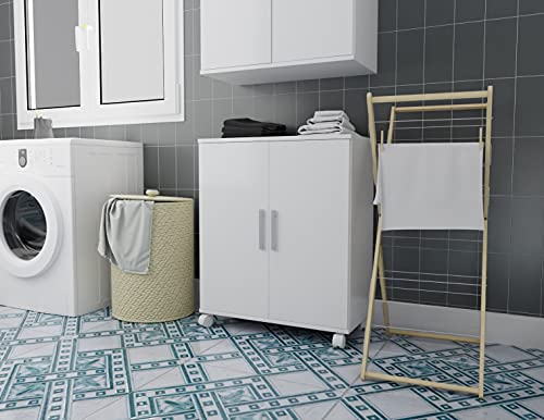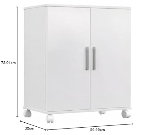 Buyqualia - دولاب سفلي متعدد الأغراض بعجلات من بايكواليا، أثاث مساعد ببابين، أبيض، خشب