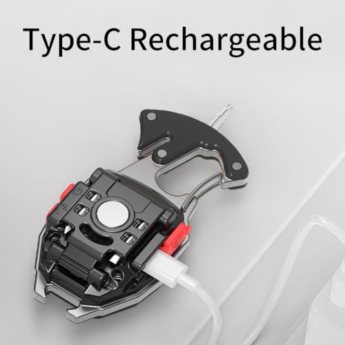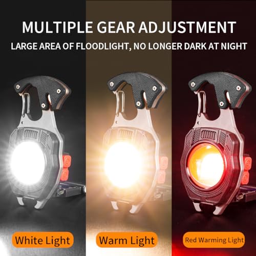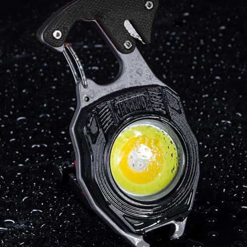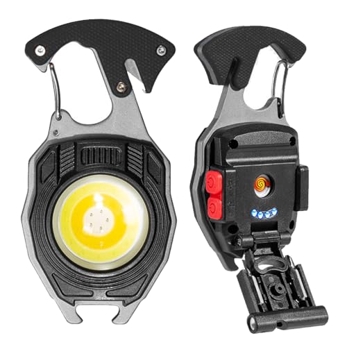 BY-J - مصباح يدوي ليد صغير بميدالية مفاتيح، مصباح عمل صغير سي او بي متعدد الوظائف بسطوع 500 لومن قابل لإعادة الشحن، كشاف بـ 7 أوضاع إضاءة مع ولاعة كهربائية وقاطع حزام الأمان ومفك وصفارة من بي واي-جيه