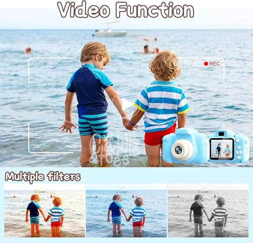 CADDLE & TOES - كاميرا ديجيتال HD مع فيديو للأطفال لهدايا عيد الميلاد والكريسماس للبنات والأولاد من 3-12 سنة كادل اند توز أزرق كامي