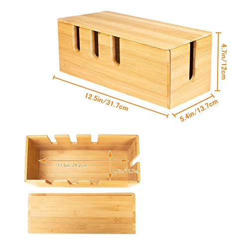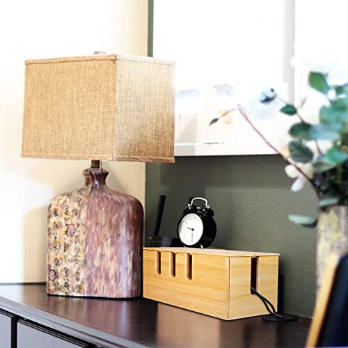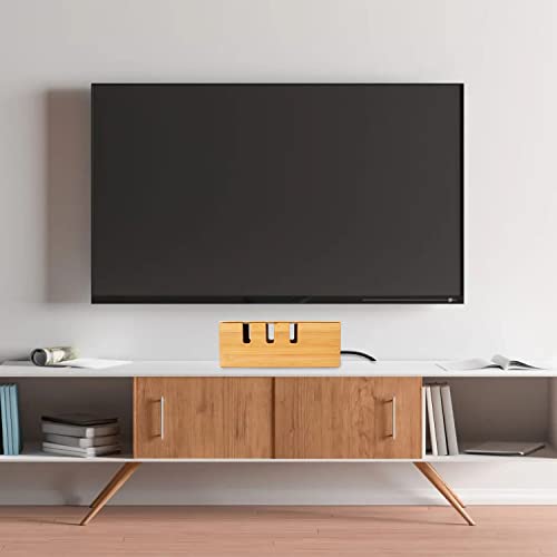 Calife - صندوق إدارة الكابلات من البامبو، منظم أسلاك إخفاء وتغطية شرائط الطاقة للأسلاك الفوضوية للمكتب والكمبيوتر والتلفزيون ونظام موزع USB للمنزل والمكتب من كاليف