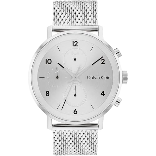 Calvin Klein - ساعة عصرية ستانلس ستيل بمينا فضي متعدد للرجال من كالفين كلاين 25200107 انالوج
