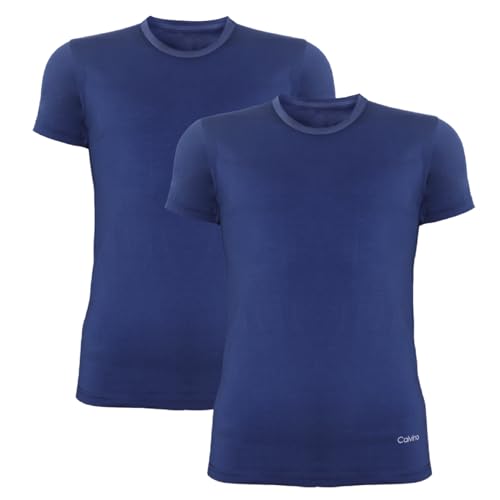 Calvino - طقم فانلة داخلية نصف كم برقبة دائرية وقصة ضيقة سليم فت للرجال من كالفينو من قطعتين، قطعة أساسية، (عبوة من قطعة واحدة)
