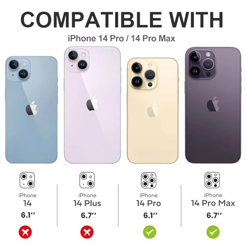 - حماية ممتازة للعدسات: يوفر الزجاج المقوى عالي القوة تغطية كاملة بزاوية 360°، مما يوفر حماية شاملة لعدسات كاميرا آيفون 14 برو وآيفون 14 برو ماكس مع وضوح استثنائي والتقاط كامل للتفاصيل.
