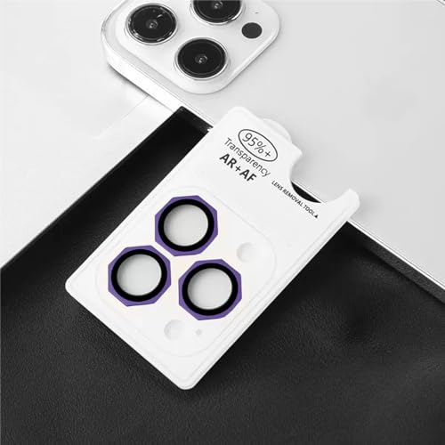 Generic - واقي عدسة الكاميرا بتصميم سداسي من الزجاج المقوى والألمنيوم، شفاف بنسبة 95% ومضاد للخدش وعالي الوضوح بتقنية AR، متوافق مع آيفون 14 برو/ 14 برو ماكس، بنفسجي غامق