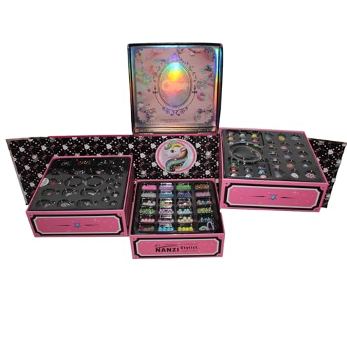 Peekaboo - صندوق مجوهرات ومكياج للأطفال من كانيا (8 في 1) بمقبض - أكثر من 2688 قطعة