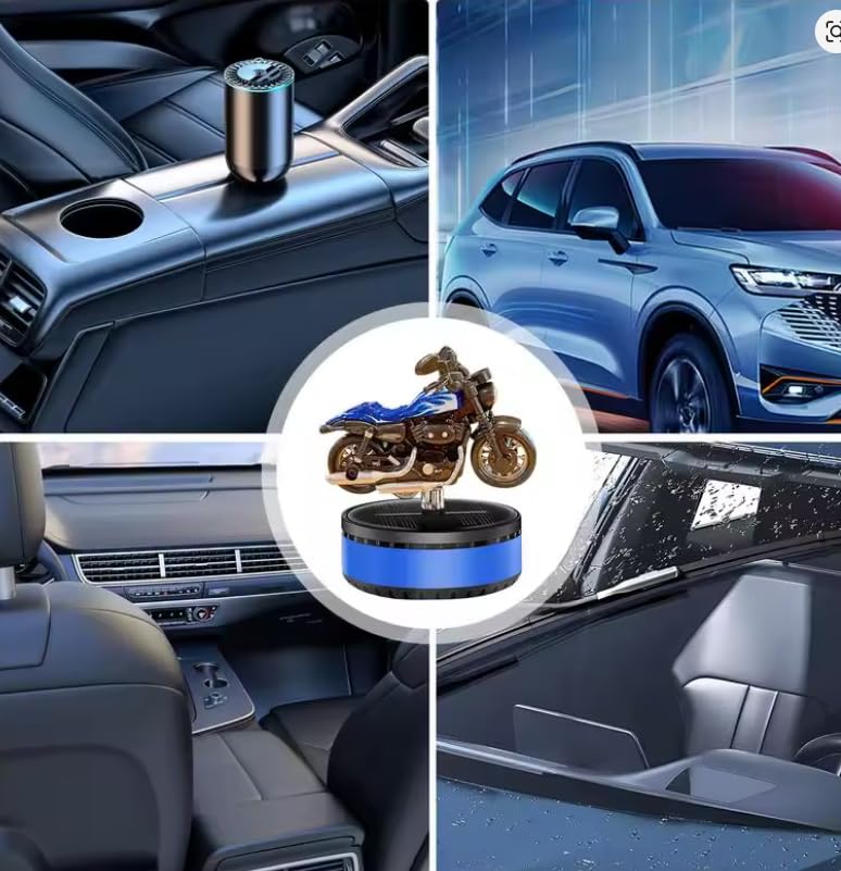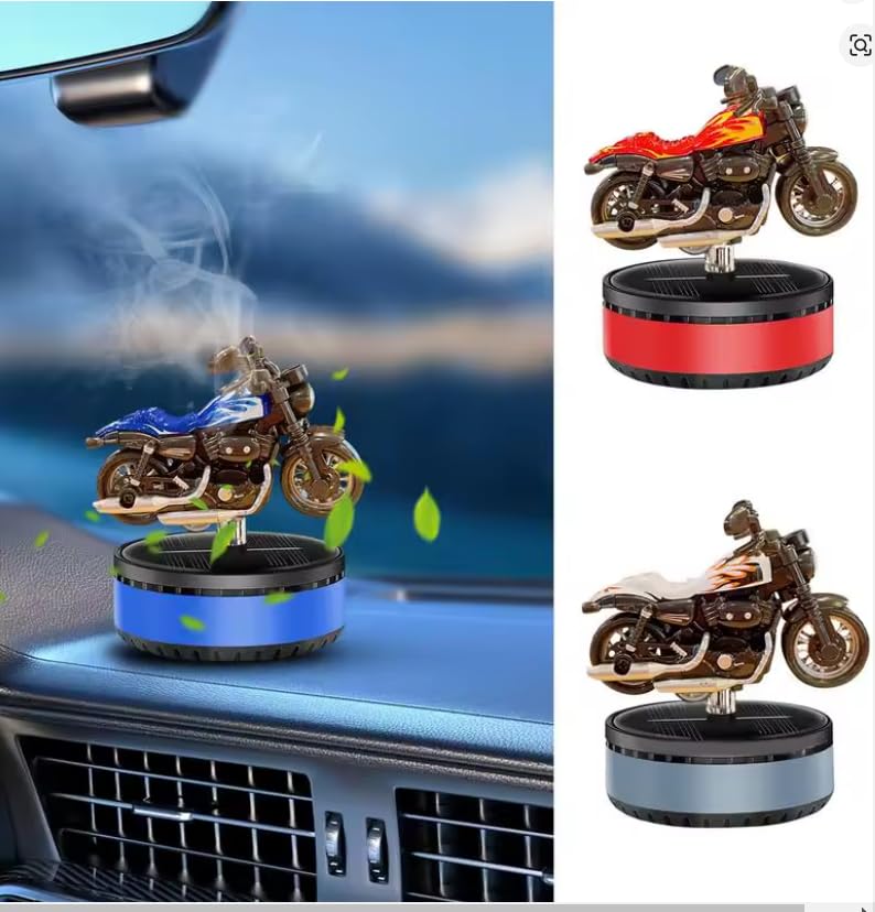 Generic - اكسسوارات سيارات (موزع زيت عطري للسيارة يعمل بالطاقة الشمسية دوران تلقائي شكل موتوسيكل)