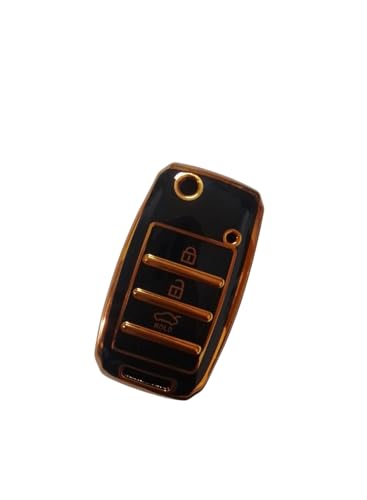 Generic - حافظة حماية لمفتاح السيارة من مادة البولي يوريثين الحراري بـ 3 أزرار، ذهبي/فضي