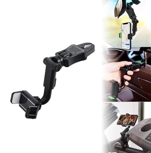 Generic - حامل موبايل للسيارة، يثبت في مراة الرؤية الخلفية ويعلق في المقعد بمشبك قابل للتعديل، تصميم عالمي متعدد الاستخدامات وقابل للدوران بزاوية 360 درجة (مشبك - رمادي) (كود:4227) - من كابر تريد