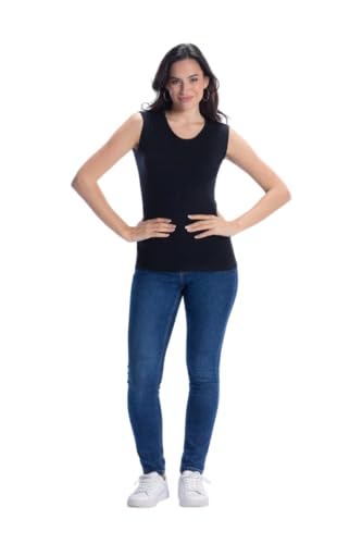 CARINA - بلوزة بدون أكمام برقبة دائرية ضيقة للنساء من المايكروفايبر، توب بدون خياطة من كارينا، متعدد الألوان، مقاس كبير للغاية 2XL (عبوة من 3 قطع)