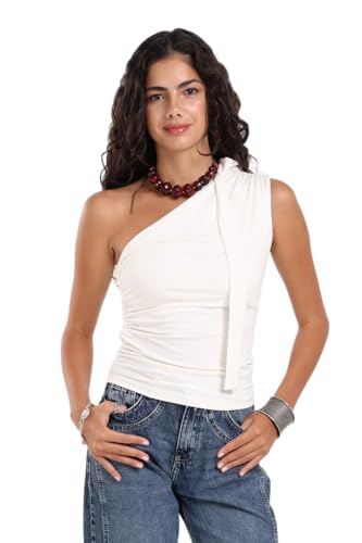 CARINA - بلوزة عصرية بكتف واحد مكشكشة للنساء