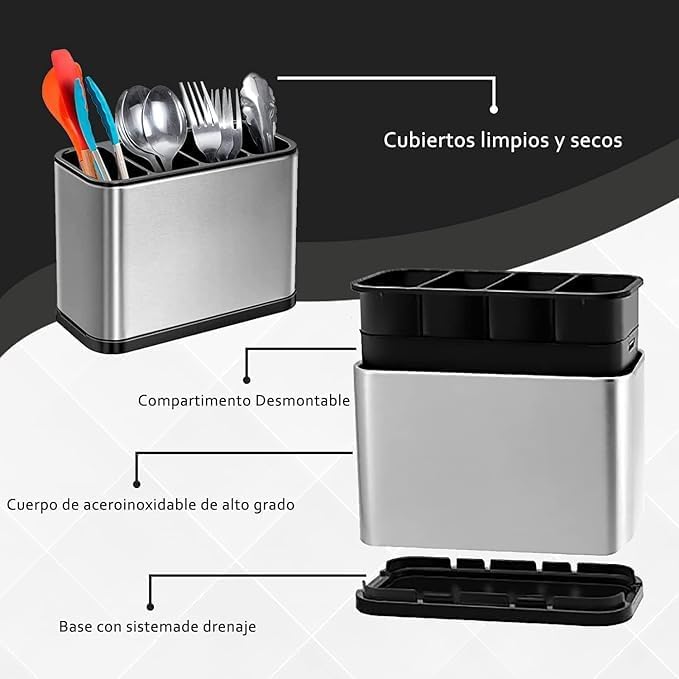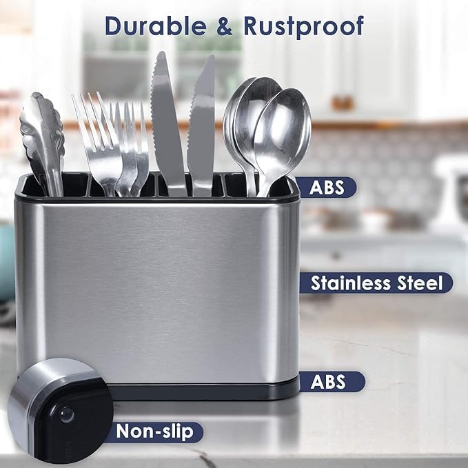 - مساعد رائع للتنظيم - بفضل التصميم متعدد الفتحات فإنه سيمنحك حلاً رائعًا لفرز أدوات المائدة للاستخدام اليومي. الهيكل المستطيل المدمج مناسب للأسطح الضيقة على طاولتك. فقط ضعه على الحوض، وسوف تحب هذا المنظم العملي.
