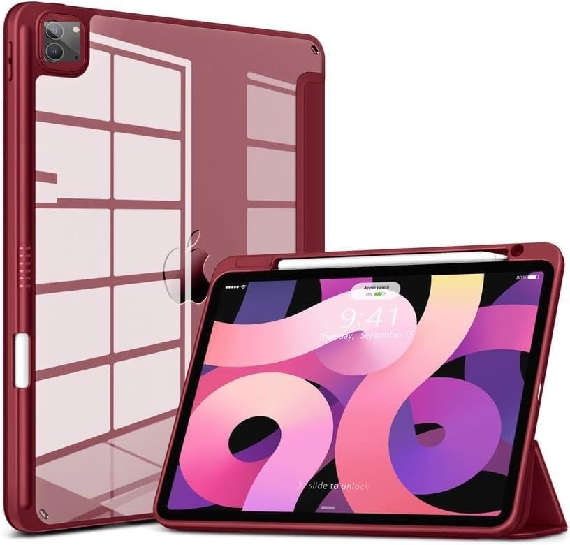 Generic - جراب لجهاز اي باد برو 13 بوصة (M4) 2024 مع حامل قلم ، مرن بحامل ثلاثي الطي من البولي يوريثين المقاوم للحرارة يدعم شحن قلم برو/قلم رصاص(USB نوع C) وخاصية النوم/التشغيل التلقائي احمر عنابى