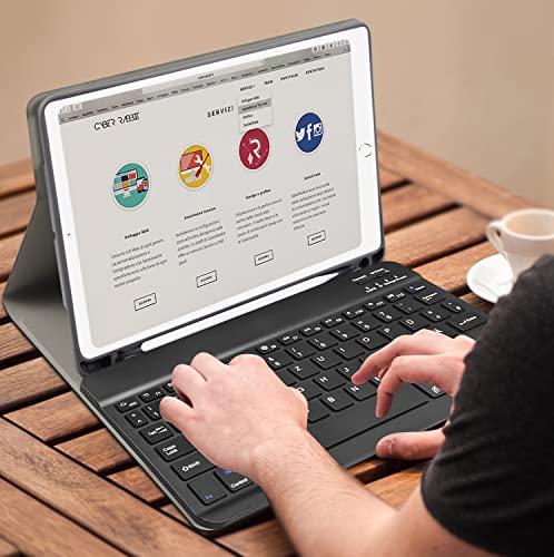 Lielax - حافظة مع كيبورد لجهاز اي باد 10.2 بوصة الجيل التاسع 2021، حافظة واقية مع حامل قلم لاسلكي قابل للإزالة (كويرتز) لاي باد 9/8/7، اي باد اير 3، اي باد برو 10.5 - أسود