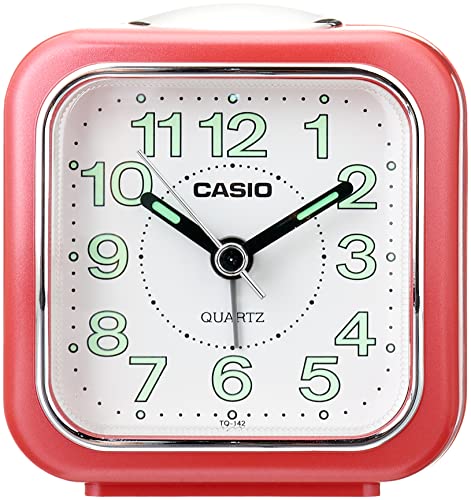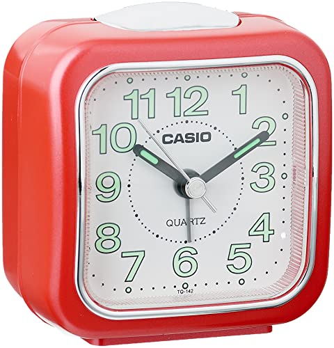 Casio - ساعة انالوج بمنبه من كاسيو، لون احمر، موديل TQ-142-4DF، بلاستيك