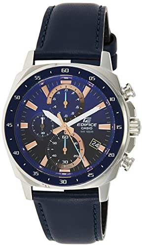 Casio - ساعة اديفيس كاسيو انالوج بعقارب كرونوغراف بسوار جلد للرجال، كحلي