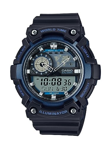 Casio - ساعة كاجوال بسوار راتنج كوارتز سوبر الومنيشن للرجال من كاسيو، اللون: اسود (الموديل: AEQ-200W-1AVCF)