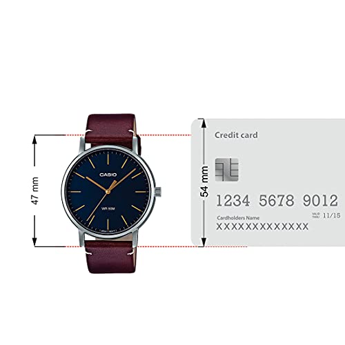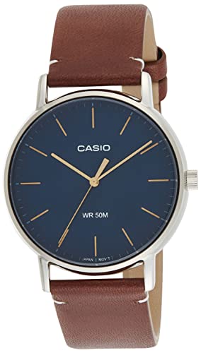 Casio - ساعة يد انالوج كاسيو MTP-E171L-2EVDF للرجال، بعقارب وسوار من الجلد باللونين البني والازرق, بني