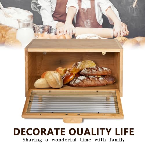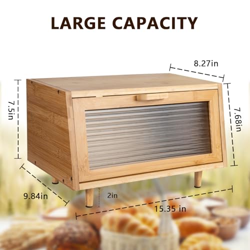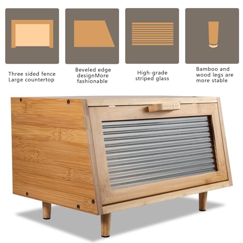 - 【هدية مثالية】: مصنوعة من مواد الخيزران والخشب عالية الجودة، إنها الهدية المثالية للعائلة والأصدقاء. زجاج أكريليك مصنفر يجعل صندوق الخبز بأكمله يبدو أنيقًا ويلبي احتياجات التخزين للمطبخ بشكل فعال مع تعزيز الجمال العام للمطبخ