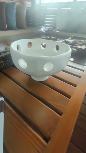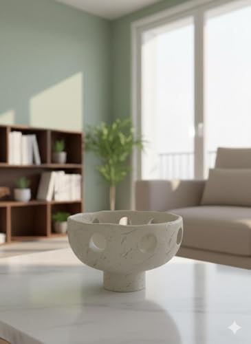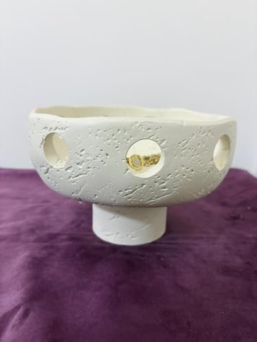 - تصميم فني: وعاء بقاعدة من السيراميك مصنوع يدويًا يتميز بلمسة نهائية مزخرفة مميزة مع أنماط مقصوصة مزخرفة في كل مكان، مما يخلق قطعة عرض لافتة للنظر