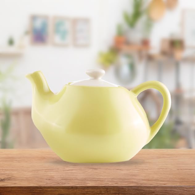 - تصميم كلاسيكي من السيراميك: يتميز إبريق الشاي الأنيق هذا بنمط لا يتأثر بمرور الزمن مع جسم أصفر مبهج وغطاء أبيض متباين.