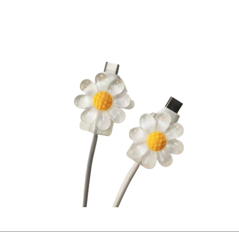 Generic - واقي كيبل شاحن USB بتصميم زهرة الاقحوان اللطيفة، ابيض مع مركز اصفر، 2.8 سم، عبوتان، توافق عالمي