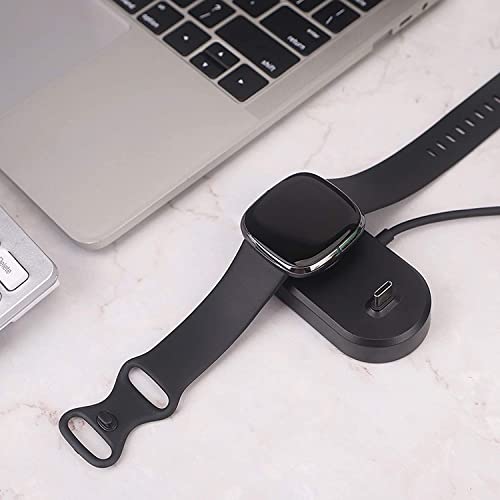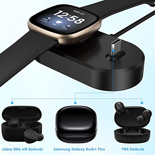 Generic - قاعدة شحن محمولة 2 في 1 بكابل شحن ومنفذ USB-C لساعة فيت بت فيرسا 3/ سينس وساعة سمارت سينس بلس وعلبة سماعات اذن لاسلكية وسماعات ايربودز بمنفذ USB-C مزودة ببلوتوث، يو اس بي، أسود