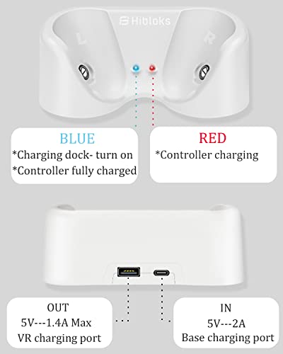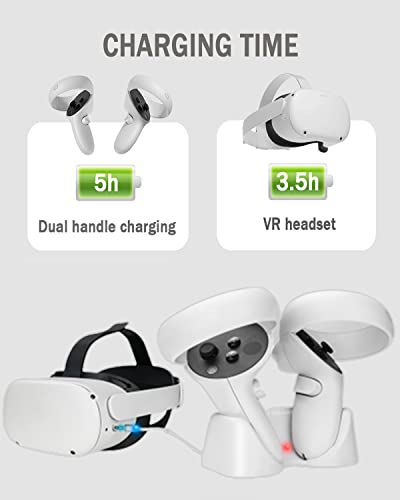 - 【قاعدة شحن سريعة】 تستغرق ملحقات الألعاب هذه لشاحن اوكيولوس كويست 2 من 5 إلى 6 ساعات فقط لشحن وحدة التحكم المزدوجة بالكامل. بعد الشحن الكامل، يمكن لوحدة التحكم الواحدة أن توفر ما يصل إلى 50 ساعة من الاستخدام؛ تشحن سماعة الواقع الافتراضي بالكامل 3.5 ساعات فقط (ملاحظة: يرجى استخدام قابس اوكيولوس كويست 2 الأصلي أو محول شحن 5 فولت 2 أمبير لضمان الشحن السريع. غير متضمن! )