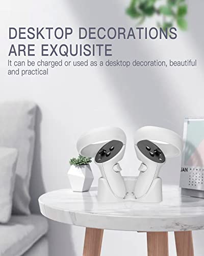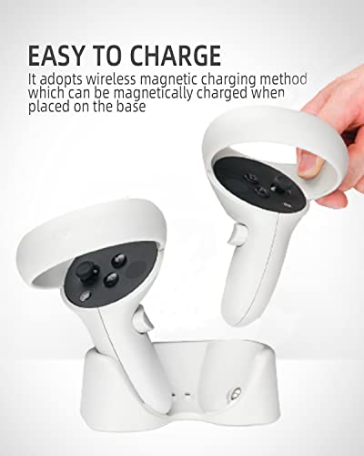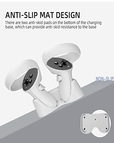 arVin - قاعدة شحن لوحدة تحكم اوكيولوس كويست 2 وسماعات الرأس، حامل محطة شحن سريع مغناطيسي مزدوج لاوكيولوس كويست 2 مع كيبل شحن سماعة الواقع الافتراضي، 2 × بطاريات قابلة لاعادة الشحن، 2 × محولات USB-A، أبيض