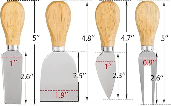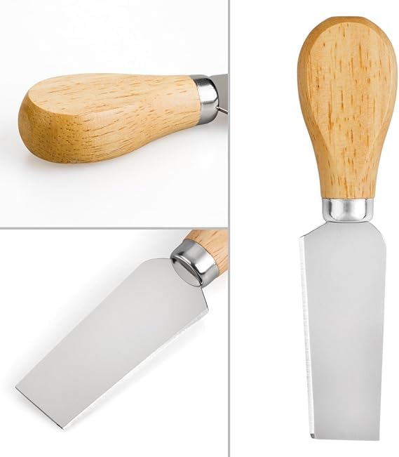 Generic - ، مجموعة من 4 قطع سكاكين جبن - قطاعة جبن من الفولاذ المقاوم للصدأ بمقبض خشبي و4 سكاكين جبن تشمل: سكينة زبدة صغير ومعلقة سباتولا وشوكة