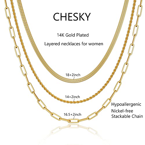 CHESKY - سلسلة للنساء من تشيسكي مطلية بالفضة والذهب عيار 14 قيراط/الفضة لهدايا مجوهرات النساء البنات- 1.5/3/5 ملم (عرض) مقاس 14/16 بوصة (طول) سلسلة شكل ثعبان متعرجة طوق ضيق