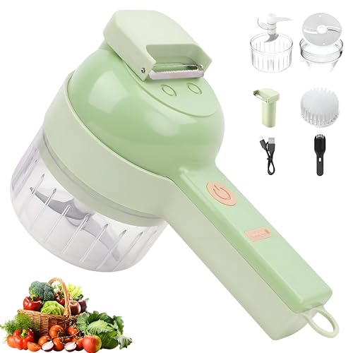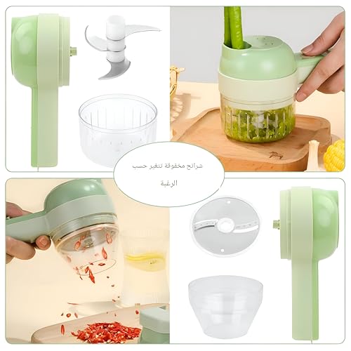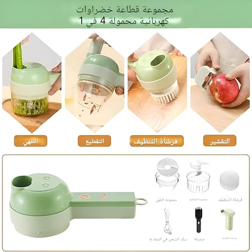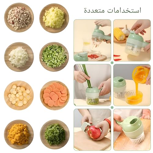 Generic - قطاعة خضار كهربائية 4 في 1 مع بطارية قابلة لإعادة الشحن، لتقطيع الثوم وبشر الخضروات، مفرمة للعصر والخلط، مناسبة لتحضير الوجبات السريعة بسهولة