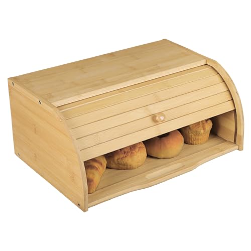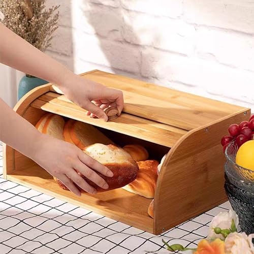 Cifupy - كيفوبي صندوق خبز كبير من الخيزران، صناديق تخزين وتنظيم طاولة المطبخ، صندوق خبز ريفي علوي ملفوف لسطح الطاولة - تخزين وتنظيم الخبز - 16 × 11 انش (باب منزلق)