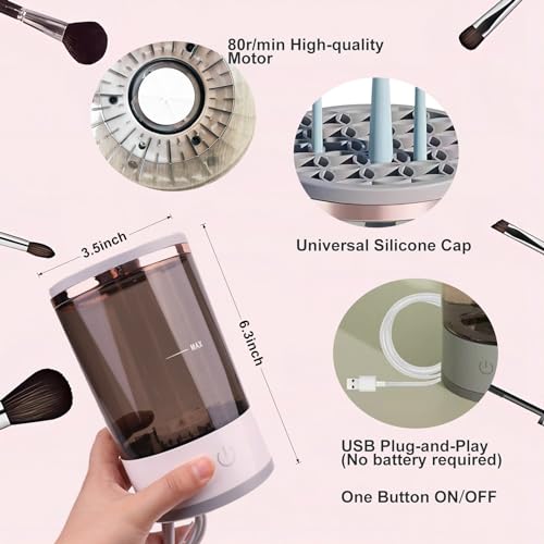 - تشغيل سهل الاستخدام🎀: يعمل بواسطة USB (ملاحظة: استخدم قابس محول 5 فولت 2 امبير للحصول على أداء مثالي)، منظف فرش المكياج الأوتوماتيكي هذا سهل التشغيل. ببساطة أضف الماء ومحلول التنظيف، واضغط على المفتاح، وسيكون جاهزًا للاستخدام (ضمن حدود المياه المحددة). يضمن مفتاح اللمس تحكمًا مريحًا. بعد التنظيف العميق، استخدم غطاء السيليكون المقلوب لتجفيف الهواء أو تخزين الفرشاة.