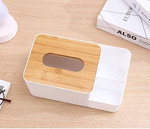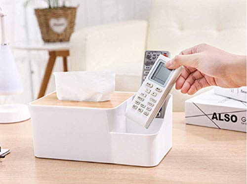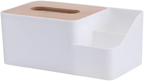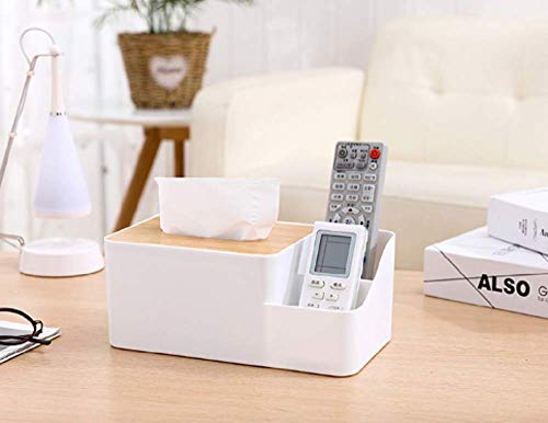 Circle M - حامل مناديل مستطيل متعدد الوظائف بغطاء خشب من سيركل ام، منظم سطح المكتب للموبايل والتابلت وجهاز الريموت كنترول والأقلام ومستحضرات التجميل، مثالي للمنزل والمكتب، لون أبيض
