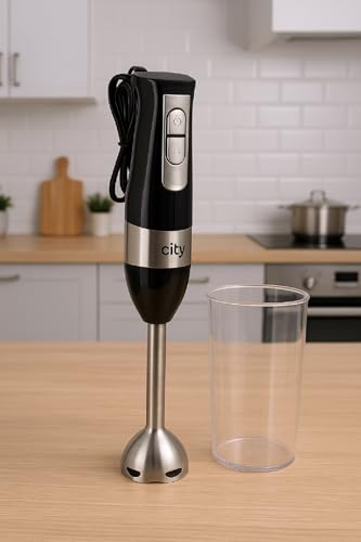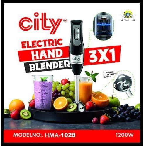 Generic - خلاط يدوي من الفولاذ المقاوم للصدأ 1200 وات 3 × 1 مع كوب قياس ومحرك فعال قوي متعدد الوظائف بسرعتين وشفرات حادة من الفولاذ المقاوم للصدأ HMA-1028 من سيتي