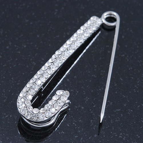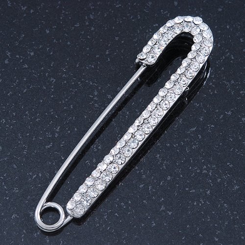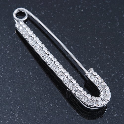 Avalaya - دبوس بروش بتصميم كلاسيكي مرصع بالكريستال النمساوي بطبقة من الروديوم - بطول 65 ملم, كريستال، للنساء
