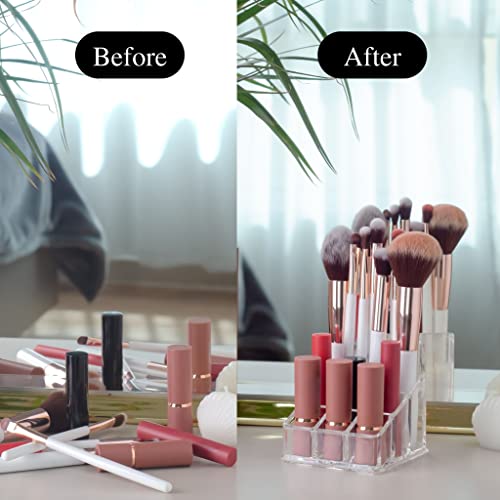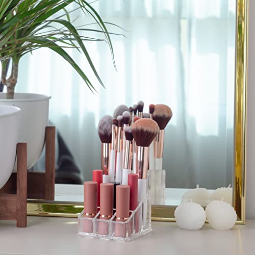 Generic - حامل ومنظم اكريليك شفاف بـ9 فواصل لتخزين المكياج واحمر الشفاه وملمع الشفاه والفرش وغيرها من ادوات التجميل