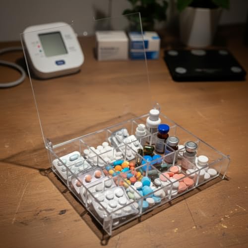 Generic - صندوق منظم اكريليك شفاف متعدد الأقسام بـ12 فاصل مع غطاء لتنظيم المجوهرات والمكياج والأغراض الصغيرة