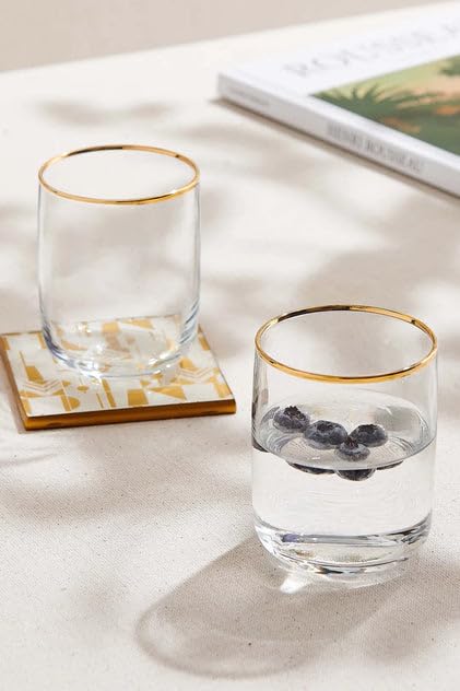 Generic - اكواب شرب شفافة بحافة ذهبية، طقم اكواب انيقة من الكريستال للمياه والمشروبات، مجموعة من 6 قطع، 270 مل