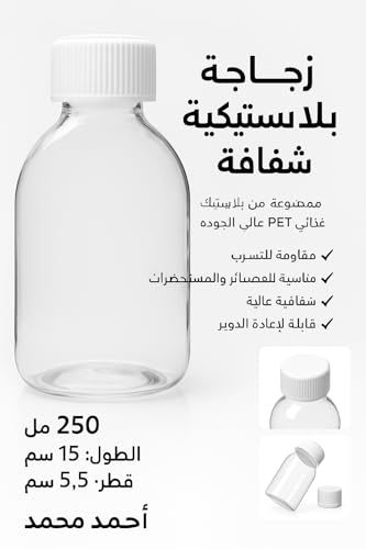 - السعة: زجاجة بلاستيكية شفافة بسعة 250 مل، مثالية للاستخدام اليومي