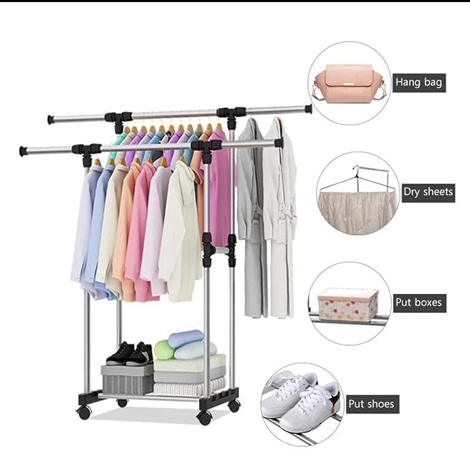 - أرجل مزدوجة لتوفير المساحة وتعليق المزيد من الملابس.
