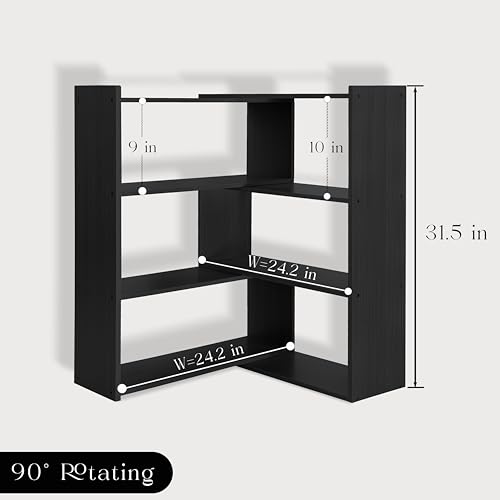 Cmishe - رف كتب من الخشب من 4 مستويات بتصميم مكتبة قابلة للتوسيع بعرض 63.5–119 سم، مكتبة حرة الطراز حديثة للمساحات الصغيرة أو الزوايا من كميشي، لون أسود