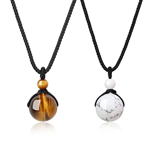 COAI - مجموعة سلاسل للثنائي بدلايات من حجر هولايت وزجاج بركاني داكن من كواي, حجر، للبالغين من الجنسين