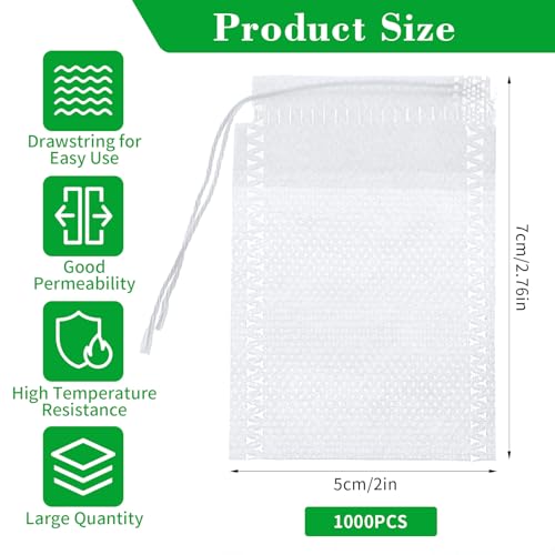 cobee - اكياس شاي للاستعمال مرة واحدة 1000 قطعة من كوبي لاوراق الشاي السائبة 2 × 2.75 انش، اكياس فلتر شاي فارغة قابلة لاعادة الاستخدام لمصافي الشاي السائب واوراق الشاي السائبة والقهوة والتوابل