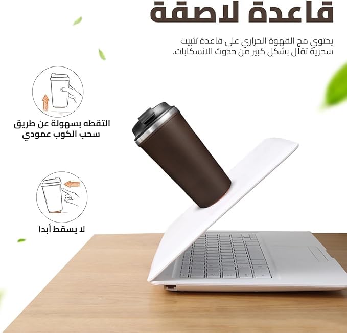- قاعدة ثابتة: صُمم كوب القهوة هذا بميزة فريدة مضادة للانقلاب، ويتميز بقاعدة متينة تمنع الانقلاب، مما يوفر راحة البال أينما تستخدمه.