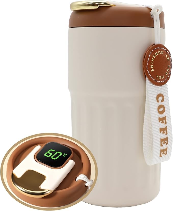 Generic - كوب قهوة معزول بتفريغ الهواء من الستانلس ستيل كوب قهوة للمنزل والمكتب والتخييم بلون ابيض