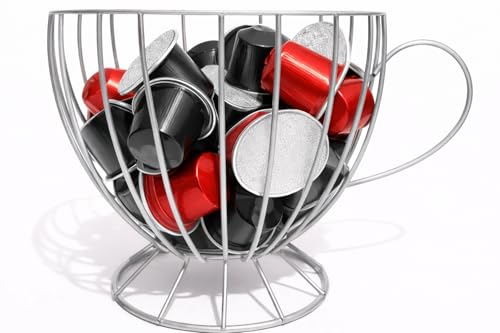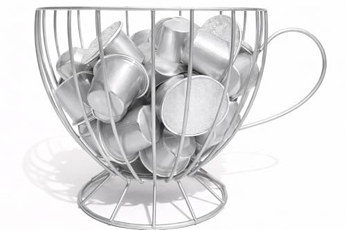 Generic - حامل كبسولات القهوة، تصميم سلة سلكية، شكل كوب مع مقبض، فضي، يحمل كبسولات